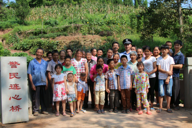 群众满意才是对工作的肯定,图为象征警民鱼水情的连心桥合影
