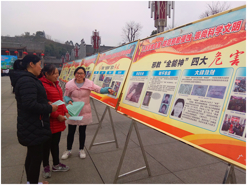 活动现场,该办工作人员通过发放宣传资料、活动展板、现场解说、播放视频等以图文并茂的方式,向广大市民生动形象的刻画了什么是邪教、邪教的表现形式、邪教和宗教的差异、邪教的“四大危害”、“邪教十大案例”等,形象生动的提高了群众警惕性,避免受邪教组织裹挟而误信邪教。
